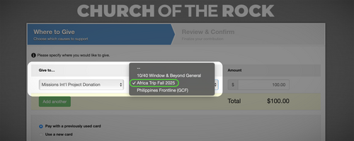 Specify your donation in Church of the Rock ONLINE GIVING.